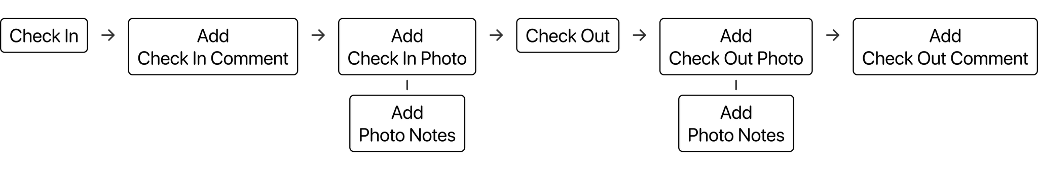 true | array[Object] | Object containing check-in data (photos, notes, timestamp). (See Check In / Check Out table) |